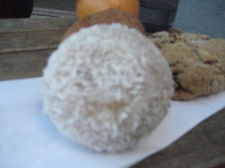 Coconut and cinnamon-sugar doughnuts, apple scone, and soy lattes.