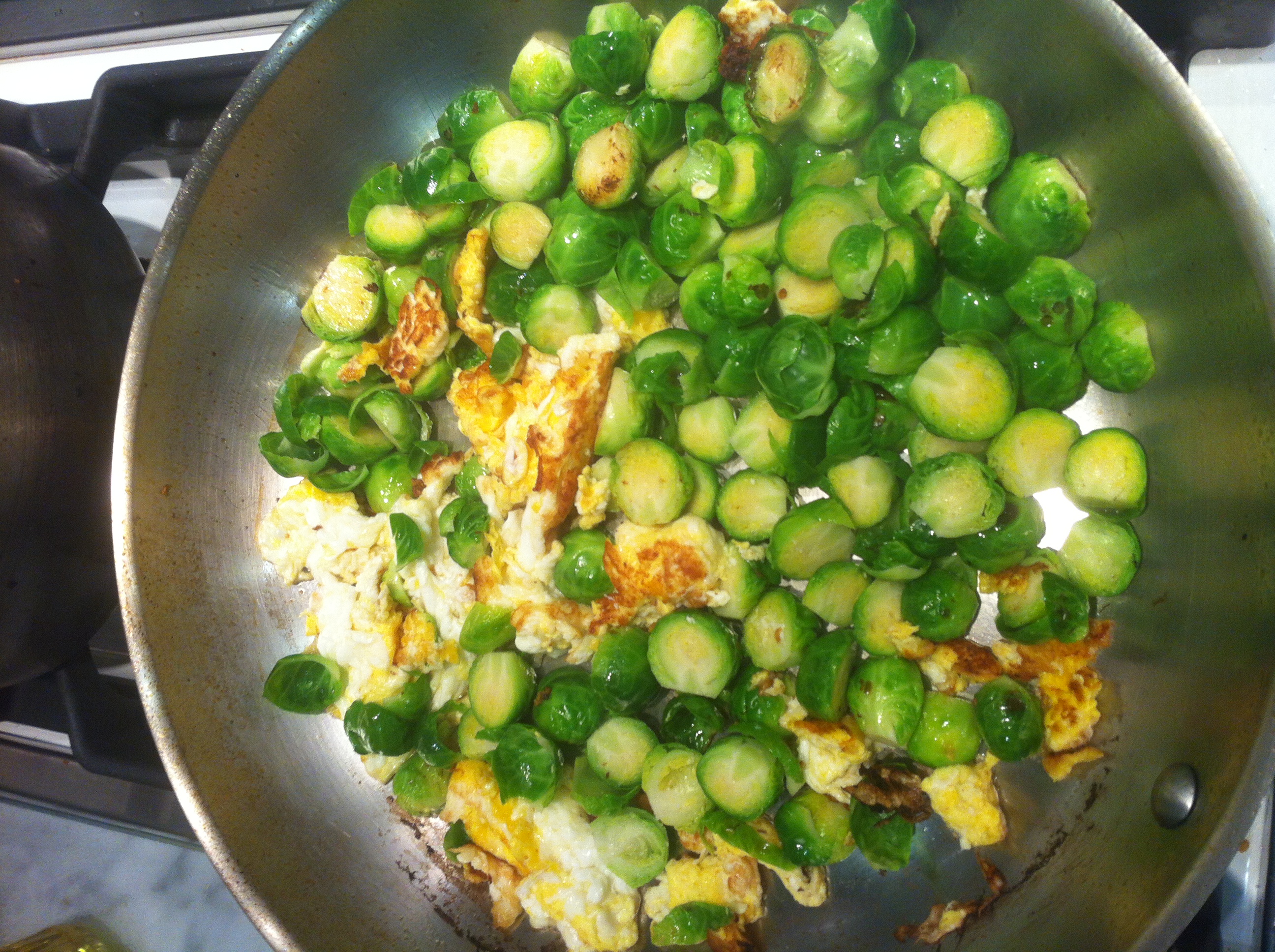 • 1-2 c vegetable of choice, washed and cut to desired size. I would suggest small, since cooking time is short. (I’ve made this with broccoli and Brussel sprouts, both of which were more outrageous than Kim Kardashian’s maternity garb)