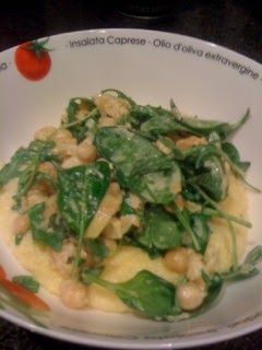 The Odd But Delicious Creamy, Lemony, Chick Pea, Spinach, and Arugula over Garlic Polenta. That is the full title.